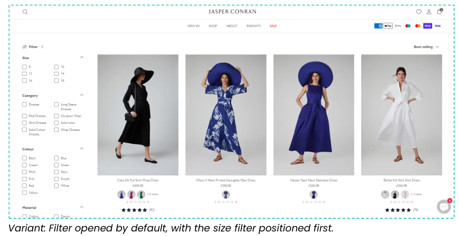 With the sad closure of all Debenhams Department Stores, Jasper Conran turned its attention to the web - launching a striking new collection of dresses featuring 12 key shapes and 31 print and colour options in 2021. Joining the SPACE program in February 2023, our team were tasked with increasing sales and visibility of the existing and refreshed ranges, taking on the formidable presence of online heavyweights such as John Lewis, ASOS & NEXT in the process.